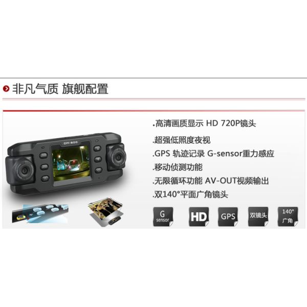 X8000A 2.3" TFT Screen Dual-lens Car Drive Recorder with GPS, TV-out, G-sensor Images |